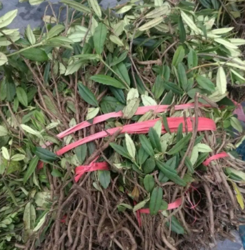 形态特征:茎呈圆柱形,长短不一,直径2-5mm,表面灰褐色或灰黄色,有粗皱纹,节略膨大,节间长短不一,有叶痕及不定根,质脆易折,断面不整齐,黄绿色。叶轮生或对生,多已胶落,完整叶片展平后呈长圆形至条形,长12-15mm,宽3-16mm,先端钝尖,叶上半部有疏锯齿,边缘反卷,厚革质;叶面草绿色,叶背黄绿色,主脉下陷,北面凸起。气微,味苦。
