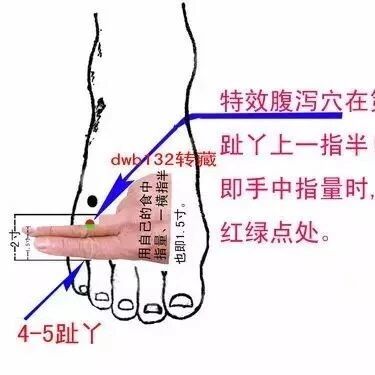 凡遇泻泄、肠炎之类的疾病;只采用本穴一穴点治、一般最多 1分钟便治愈,几十年来的经验证明,采用该穴治病,方法简单,时间最少,具有令人难以置信的效果,远非任何药物可比的!不怕病急乱投医;当患者腹痛腹泻乘着车往医院的途中,如果能自觉按揉这个“腹泻特效穴”,嘻嘻,也许还没到达大医院,病就给自己..