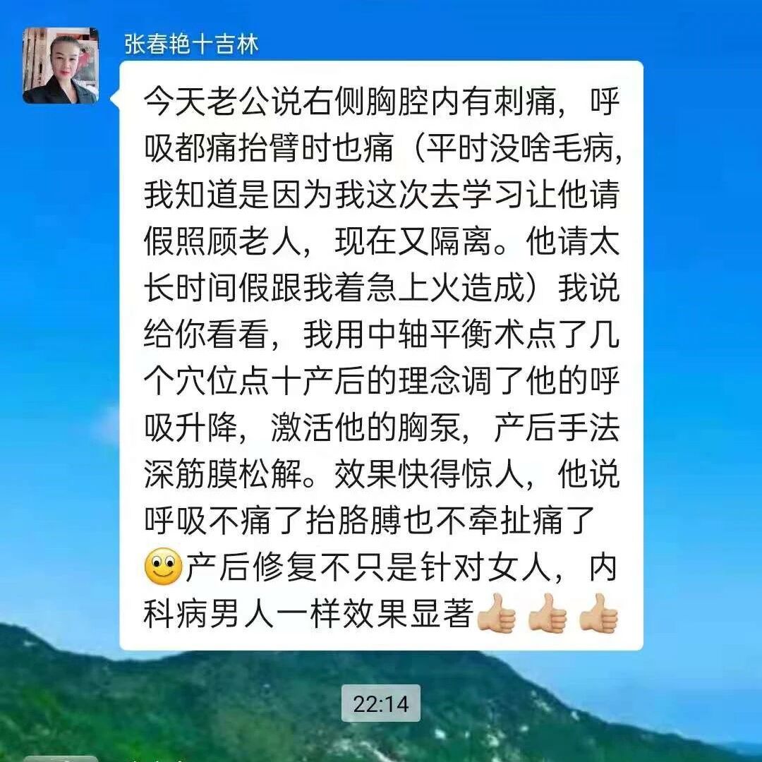 产后修复法治疗漏尿、胸腔内刺痛、腰疼、胳膊酸困、胸闷咳喘